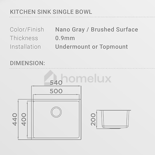 Kitchen Sink Single Bowl Nano Gray Color